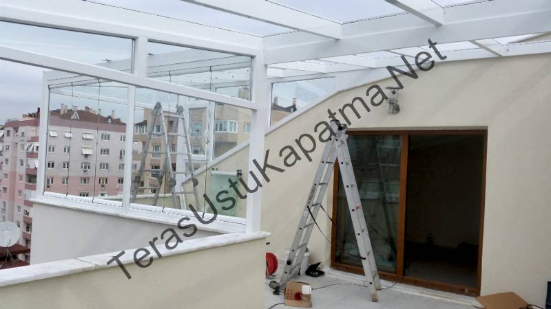 Etrafının kapatılması işlemi ise balkon sistemlerinde uygulanan kayar katlanır cam balkon kapatma sistemleri ile yapılmaktadır yada eşik istenilmeyen ve yüksek olan alanlarda ise üsten askılı boy cam sistemleri ile kapatılır, çatı teras kapatma sistemleri estetik ve emniyetli olup rahatlıkla kullanılabilir ve uygulandığı alanların dört mevsim kullanılmasını sağlar.